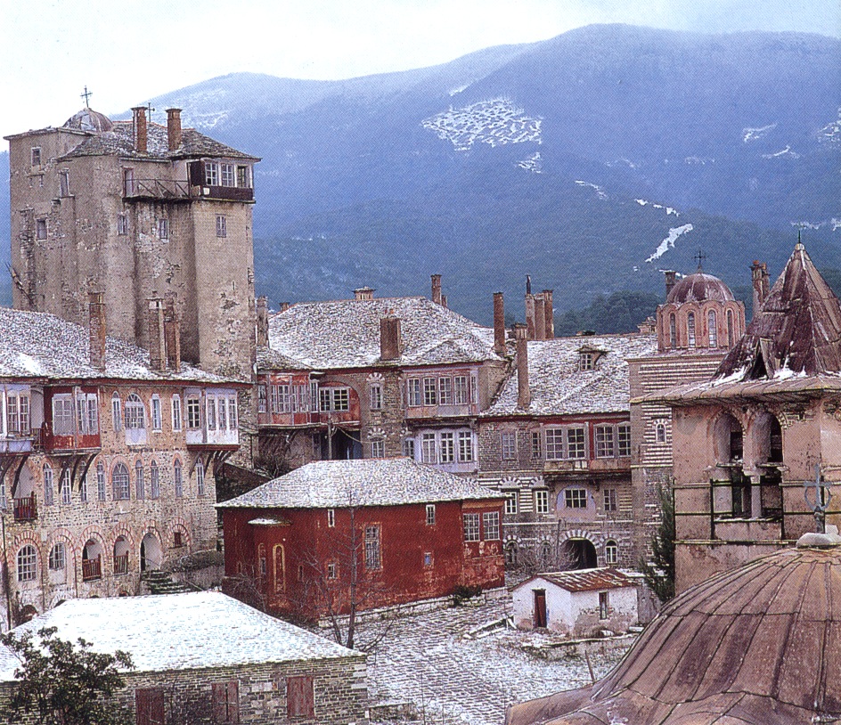 Ο ναός των Αγίων Αναργύρων (στή μέση) και ο πύργος της Μεταμορφώσεως