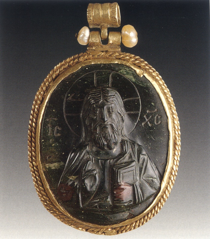 Εγκόλπιο από ίασπι και χρυσό με την μορφή του Χριστού Παντοκράτορος, 13ος αιώνας