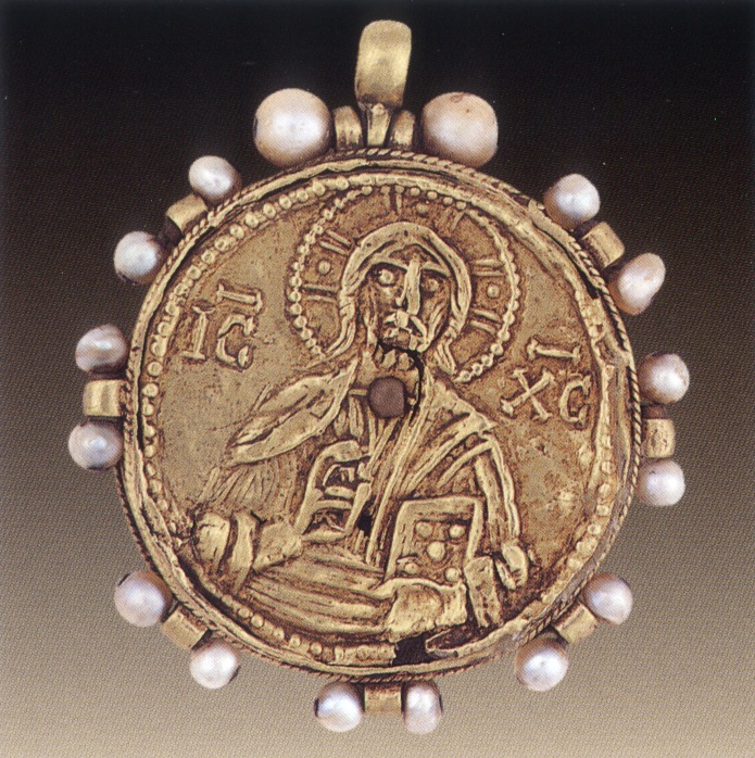 Αμφιπρόσωπο εγκόλπιο με παραστάσεις του Χριστού Παντοκράτορος και του Αγίου Δημητρίου, 14ος αιώνας
