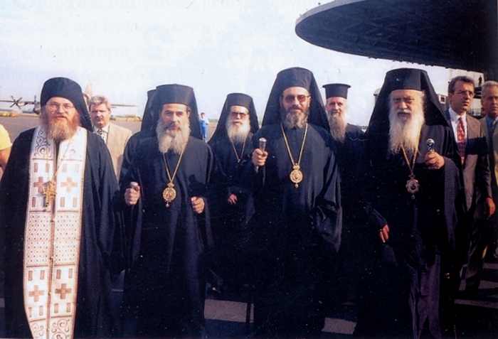 Η κορυφή των κληρικών, οι οποίοι συμμετείχαν στην μετακομιδή των Ιερών λειψάνων του Αγίου Μαξίμου από τη Ρωσσία στην Ελλάδα. Εξ αριστερών διακρίνονται ο κ. Εφραίμ, Καθηγούμενος της Ιεράς Μονής Βατοπαιδίου, ο Μητροπολίτης Άρτης κ.κ. Ιγνάτιος Δ’, ο Μητροπολίτης Ρεθύμνου και Αύλοποτάμου κ.κ. Άνθιμος και ο Μητροπολίτης Αργολίδος κ.κ. Ιάκωβος.