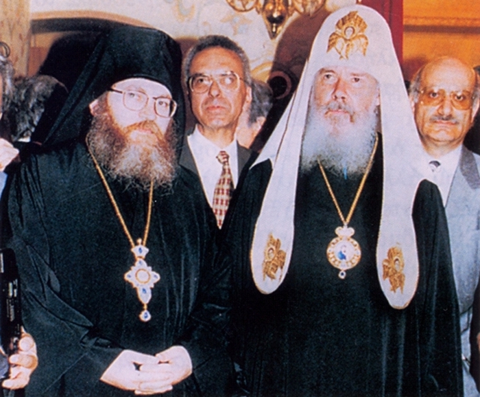 Αναμνηστική φωτογραφία του οργανωτού της μεγάλης και ιστορικής μετακομιδής με τον Πατριάρχη Μόσχας και πάσης Ρωσσίας. Σε δεύτερο πλάνο ο Πρέσβης της Κύπρου στην Αθήνα και ο Πρόξενος της Κύπρου στην Μόσχα.