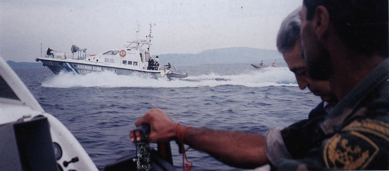 Συγκινητική νηοπομπή με πλοιάρια και σκάφη του Λιμενικού Σώματος σε τιμητική συνοδεία συντροφεύουν την «επιστροφή» του Αγίου Μαξίμου του Γραικού μετά 481 έτη στη Μονή του, στο Βατοπαίδι του Αγίου Όρους.