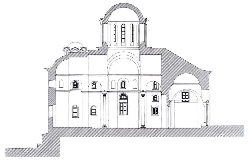 Κάτοψη και κατά μήκος τομή του παρεκκλησίου της Αγίας Ζώνης