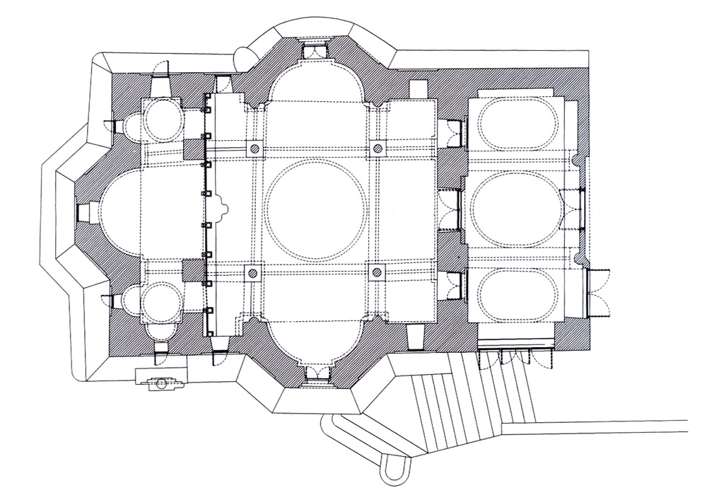 Κάτοψη και κατά μήκος τομή του παρεκκλησίου της Αγίας Ζώνης